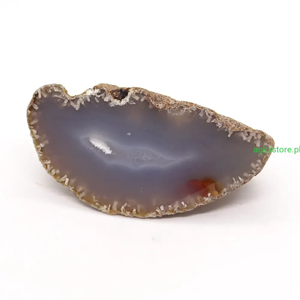 Dzięki temu podkreśla jego naturalne piękno i wyjątkowy charakter. Agat zachwyca swoją naturalną urodą. Kamień został starannie oszlifowany, co podkreśla jego niepowtarzalny kolor i wzór. Jego forma, zwana zgładem, jest idealna do prezentacji, ale także do użytku jako ozdoba. Każdy okaz jest inny, co sprawia, że agat jest kamieniem wyjątkowym i niepowtarzalnym.