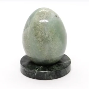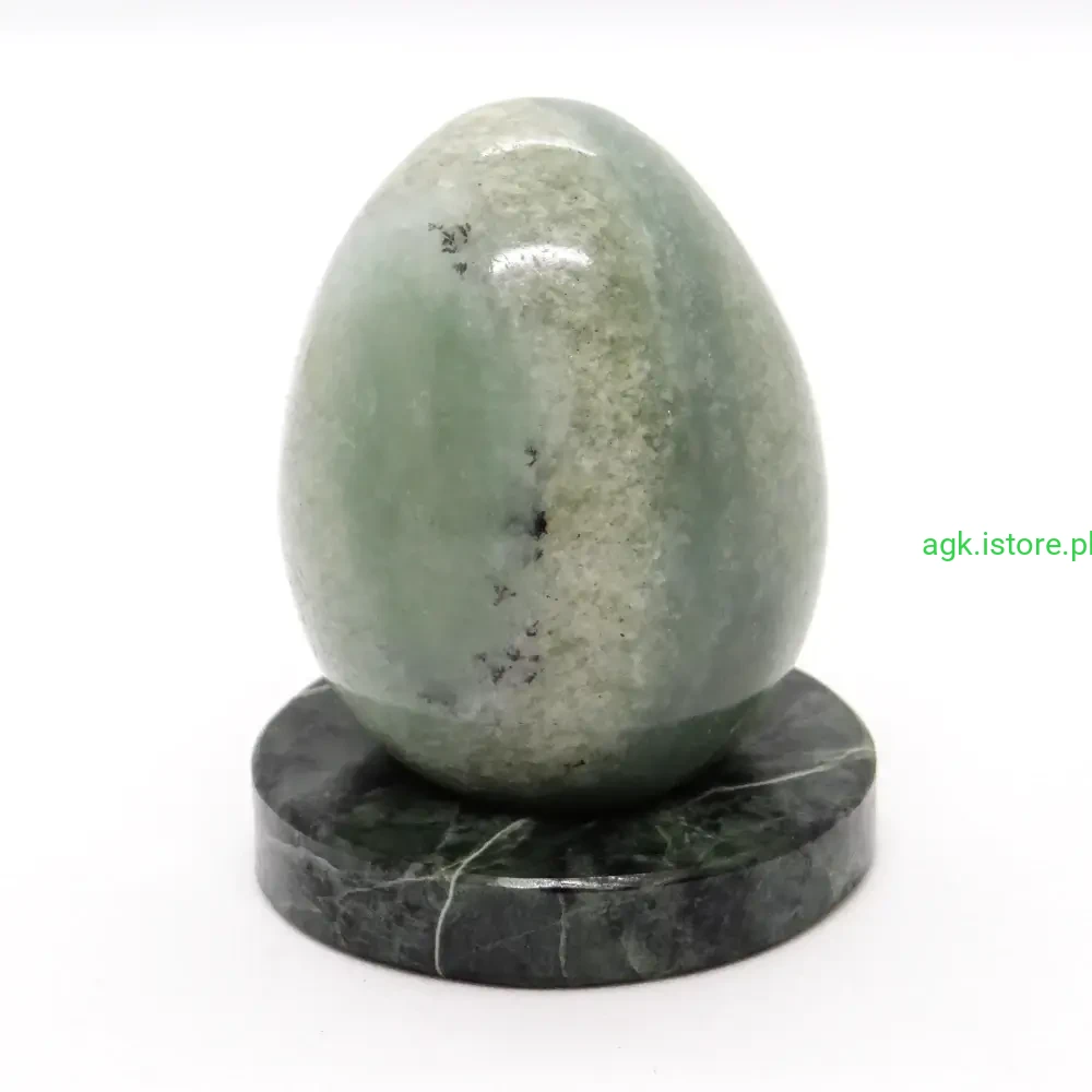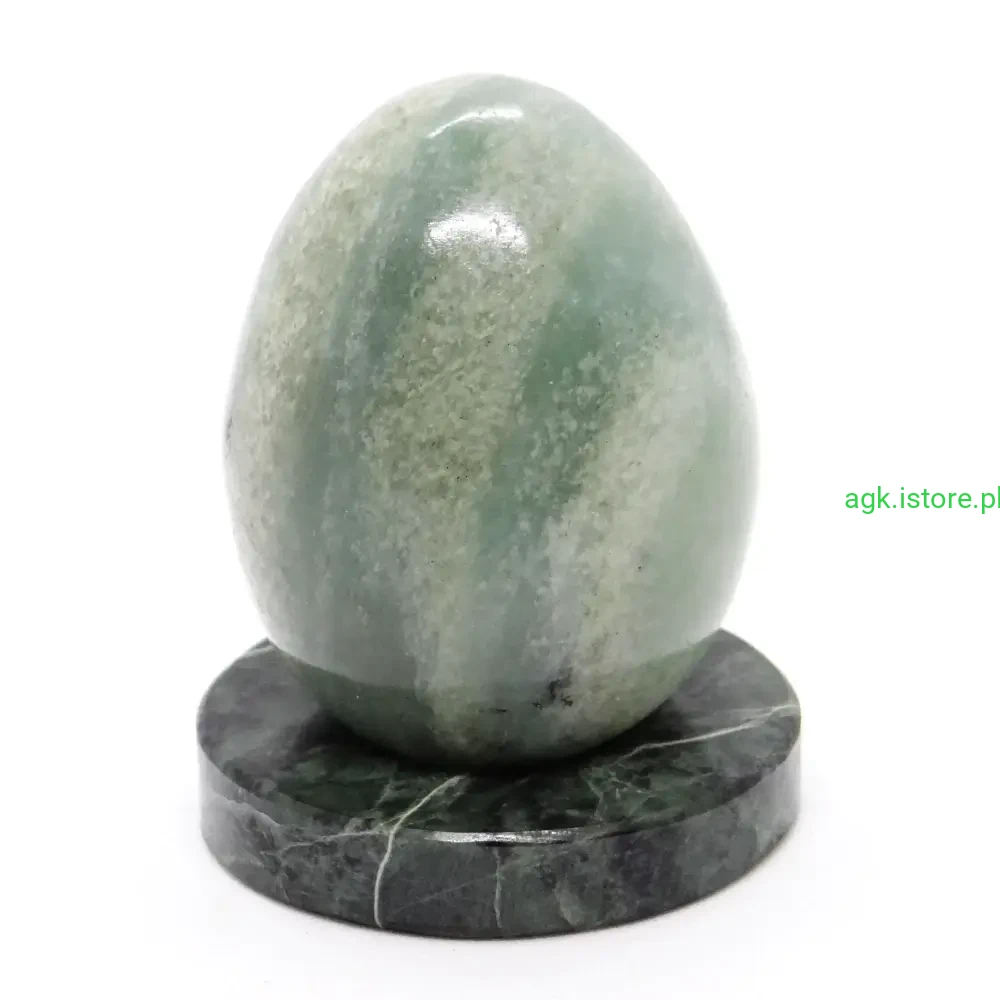 Kamień został starannie oszlifowany, co dodaje mu elegancji i wyrafinowania, podkreśla jego niepowtarzalny kolor. Dzięki temu idealnie nadaje się na ozdobę do domu czy biura. Polerowany awenturyn błyszczy się w świetle, przyciągając uwagę swoim niezwykłym kolorem i połyskiem. Mimo że jest nieprzezroczysty, jego powierzchnia jest gładka i lśniąca, co dodaje mu dodatkowego uroku. Jego forma to jajko, które jest idealna do prezentacji, ale także do użytku jako ozdoba.