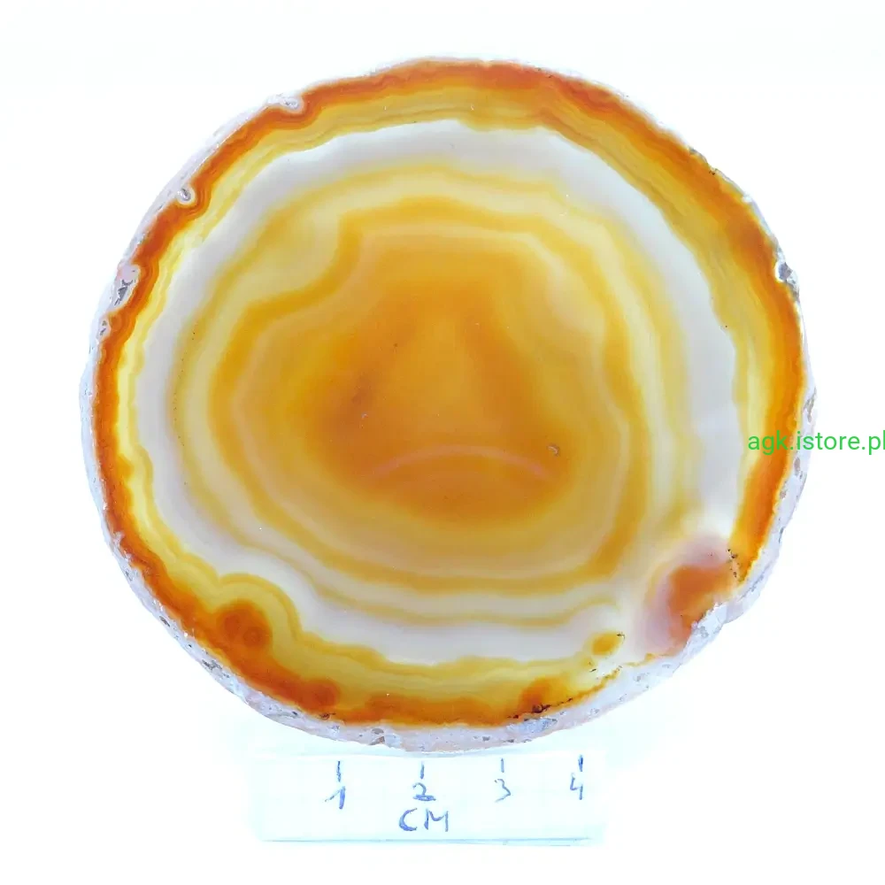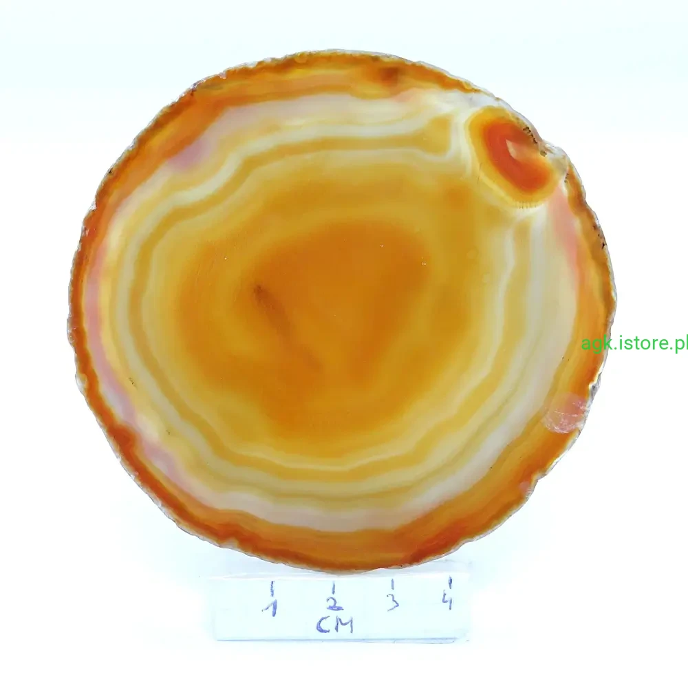 Dzięki temu podkreśla jego naturalne piękno i wyjątkowy charakter. Agat zachwyca swoją naturalną urodą. Kamień został starannie oszlifowany, co podkreśla jego niepowtarzalny kolor i wzór. Jego forma, zwana plastrem, jest idealna do prezentacji, ale także do użytku jako ozdoba. Każdy okaz jest inny, co sprawia, że agat jest kamieniem wyjątkowym i niepowtarzalnym.