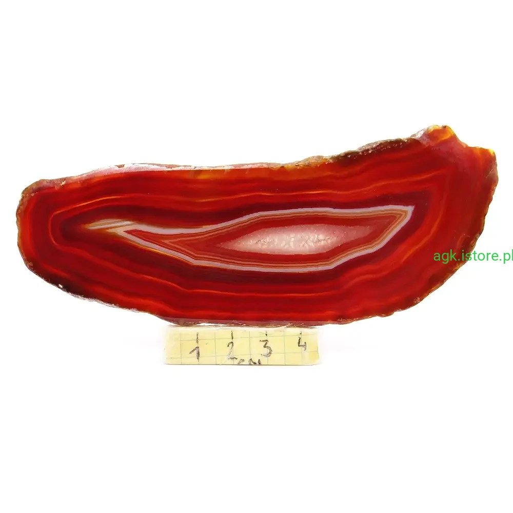Dzięki temu podkreśla jedo naturalne piękno i wyjątkowy charakter. Agat zachwyca swoją naturalną urodą. Kamień został starannie oszlifowany, co podkreśla jego niepowtarzalny kolor i wzór. Jego forma, zwana plastrem, jest idealna do prezentacji, ale także do użytku jako ozdoba. Każdy okaz jest inny, co sprawia, że agat jest kamieniem wyjątkowym i niepowtarzalnym.