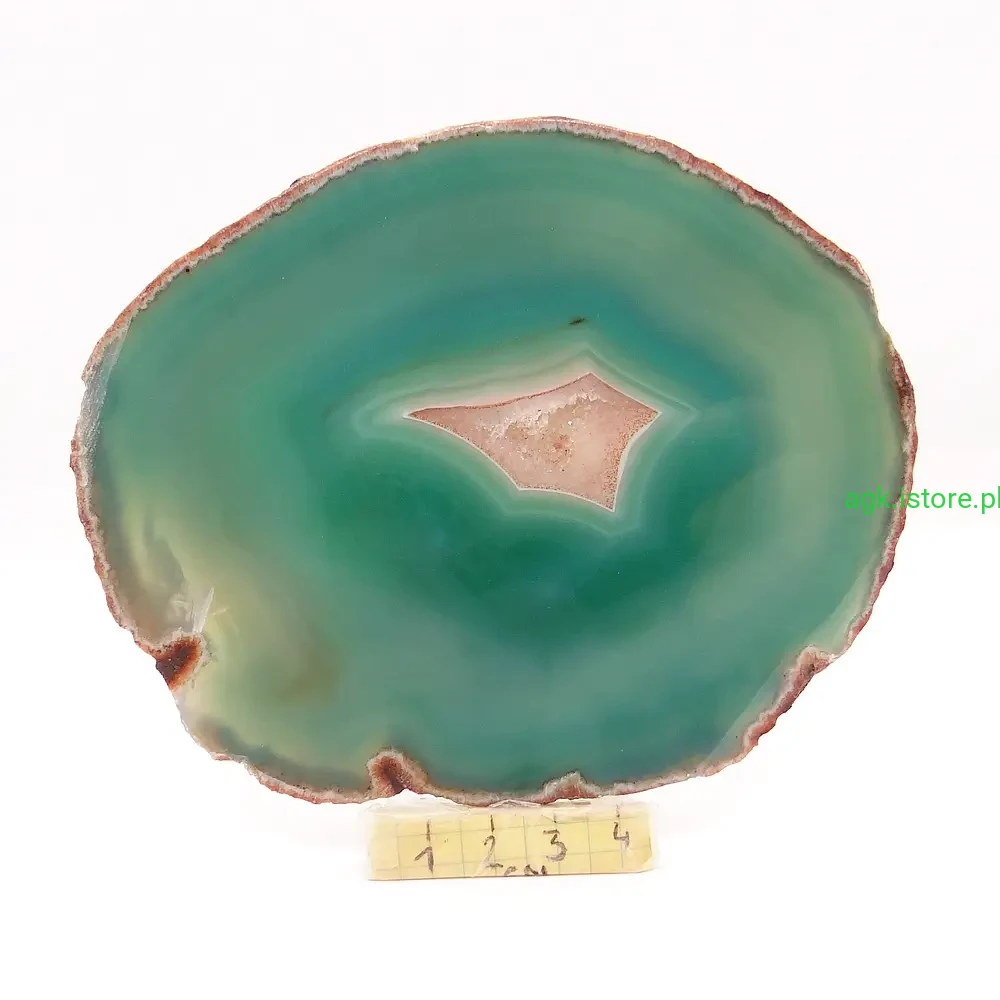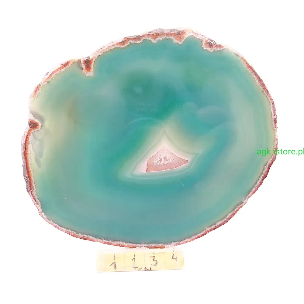 Dzięki temu podkreśla jedo naturalne piękno i wyjątkowy charakter. Agat zachwyca swoją naturalną urodą. Kamień został starannie oszlifowany, co podkreśla jego niepowtarzalny kolor i wzór. Jego forma, zwana plastrem, jest idealna do prezentacji, ale także do użytku jako ozdoba. Każdy okaz jest inny, co sprawia, że agat jest kamieniem wyjątkowym i niepowtarzalnym.