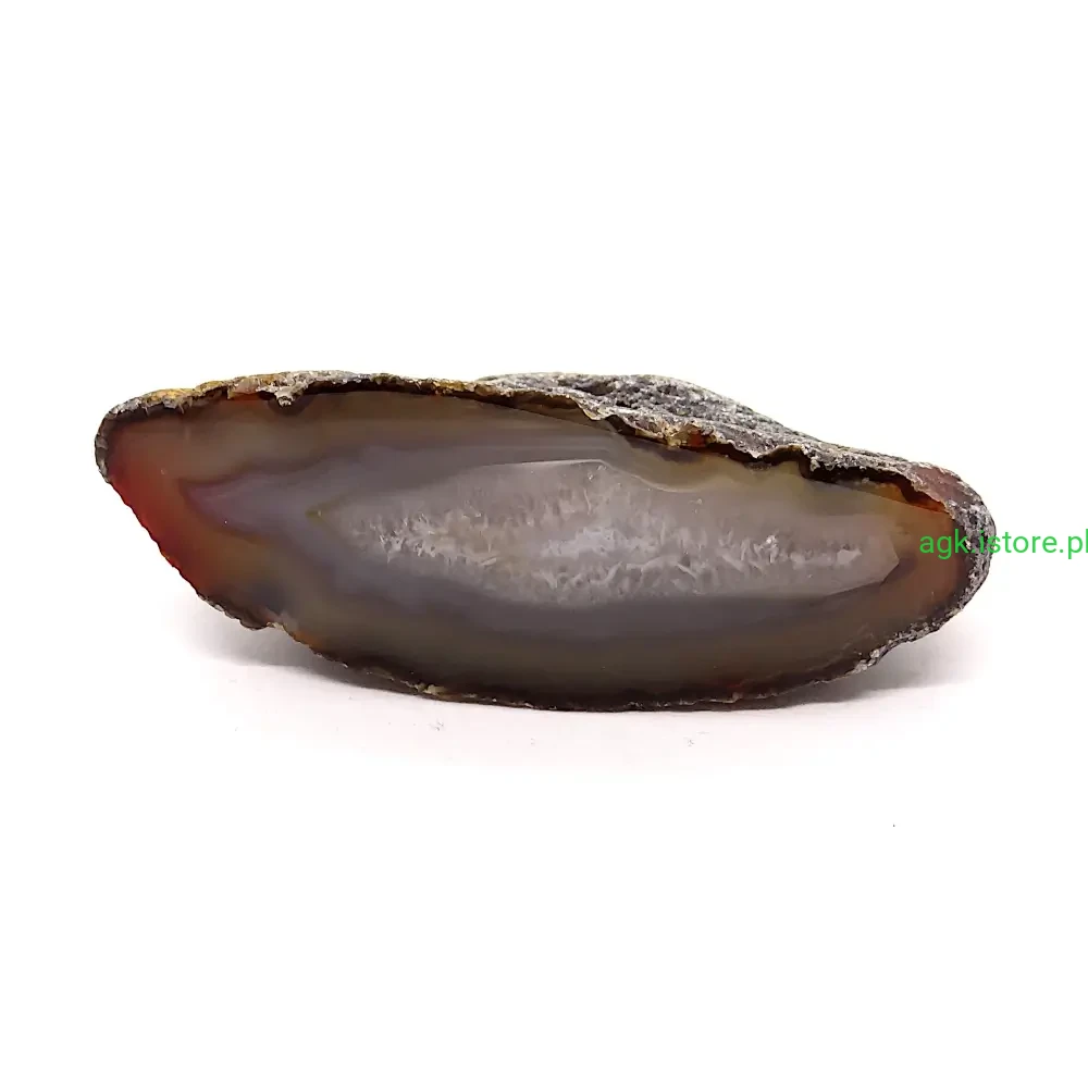 Dzięki temu podkreśla jego naturalne piękno i wyjątkowy charakter. Agat zachwyca swoją naturalną urodą. Kamień został starannie oszlifowany, co podkreśla jego niepowtarzalny kolor i wzór. Jego forma, zwana zgładem, jest idealna do prezentacji, ale także do użytku jako ozdoba. Każdy okaz jest inny, co sprawia, że agat jest kamieniem wyjątkowym i niepowtarzalnym.