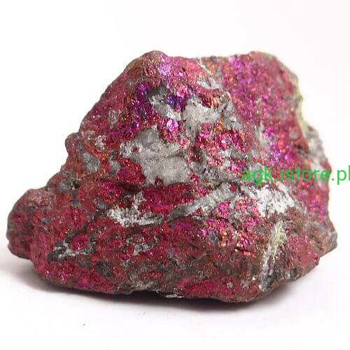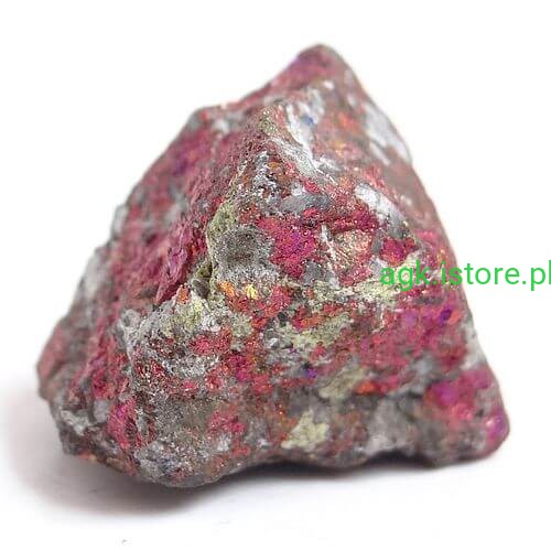 Surowa bryłka, która nie była poddawana żadnej obróbce. Jest to surowy, nieoszlifowany kamień, który zachwyca swoją naturalną, niepowtarzalną urodą. Jego połysk jest metaliczny, co sprawia, że kamień błyszczy się i mieni w świetle, przyciągając wzrok swoim blaskiem.