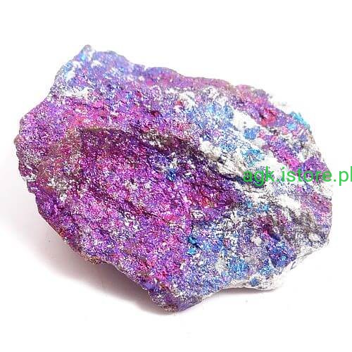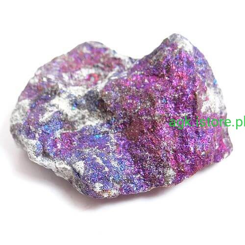 Surowa bryłka, która nie była poddawana żadnej obróbce. Jest to surowy, nieoszlifowany kamień, który zachwyca swoją naturalną, niepowtarzalną urodą. Jego połysk jest metaliczny, co sprawia, że kamień błyszczy się i mieni w świetle, przyciągając wzrok swoim blaskiem.