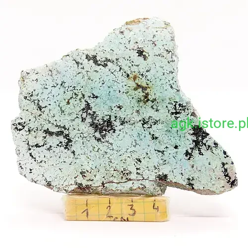Dzięki temu podkreśla jedo naturalne piękno i wyjątkowy charakter. Turkus zachwyca swoją naturalną urodą. Kamień został starannie oszlifowany, co podkreśla jego niepowtarzalny kolor. Jego forma, zwana plastrem, jest idealna do prezentacji, ale także do użytku jako ozdoba. Każdy okaz jest inny, co sprawia, że turkus jest kamieniem wyjątkowym i niepowtarzalnym.