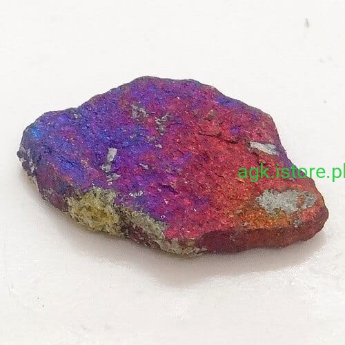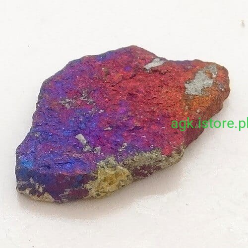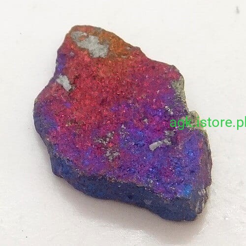 Surowa bryłka, która nie była poddawana żadnej obróbce. Jest to surowy, nieoszlifowany kamień, który zachwyca swoją naturalną, niepowtarzalną urodą. Jego połysk jest metaliczny, co sprawia, że kamień błyszczy się i mieni w świetle, przyciągając wzrok swoim blaskiem.