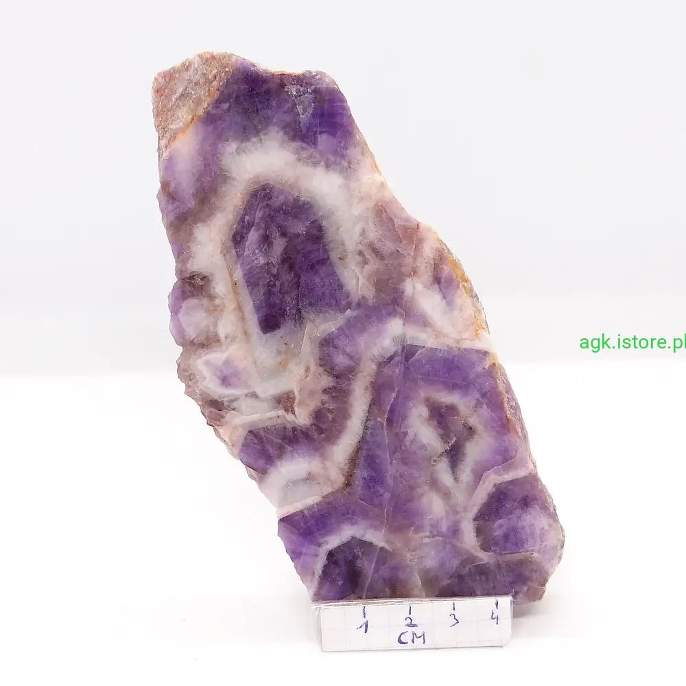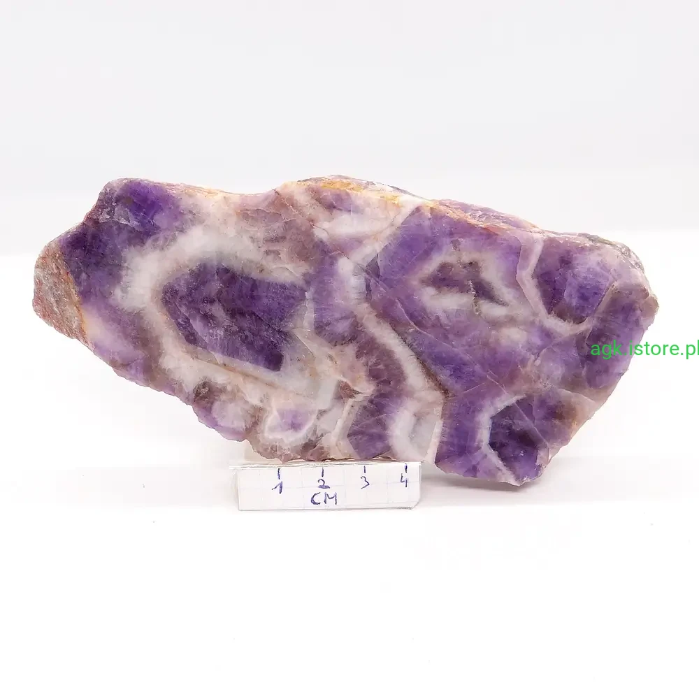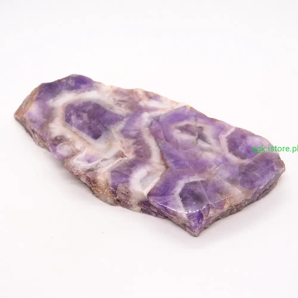 Dzięki temu podkreśla jego naturalne piękno i wyjątkowy charakter. Ametyst zachwyca swoją naturalną urodą. Kamień został starannie oszlifowany, co podkreśla jego niepowtarzalny kolor. Jego forma, zwana plastrem, jest idealna do prezentacji, ale także do użytku jako ozdoba. Każdy okaz jest inny, co sprawia, że ametyst jest kamieniem wyjątkowym i niepowtarzalnym.
